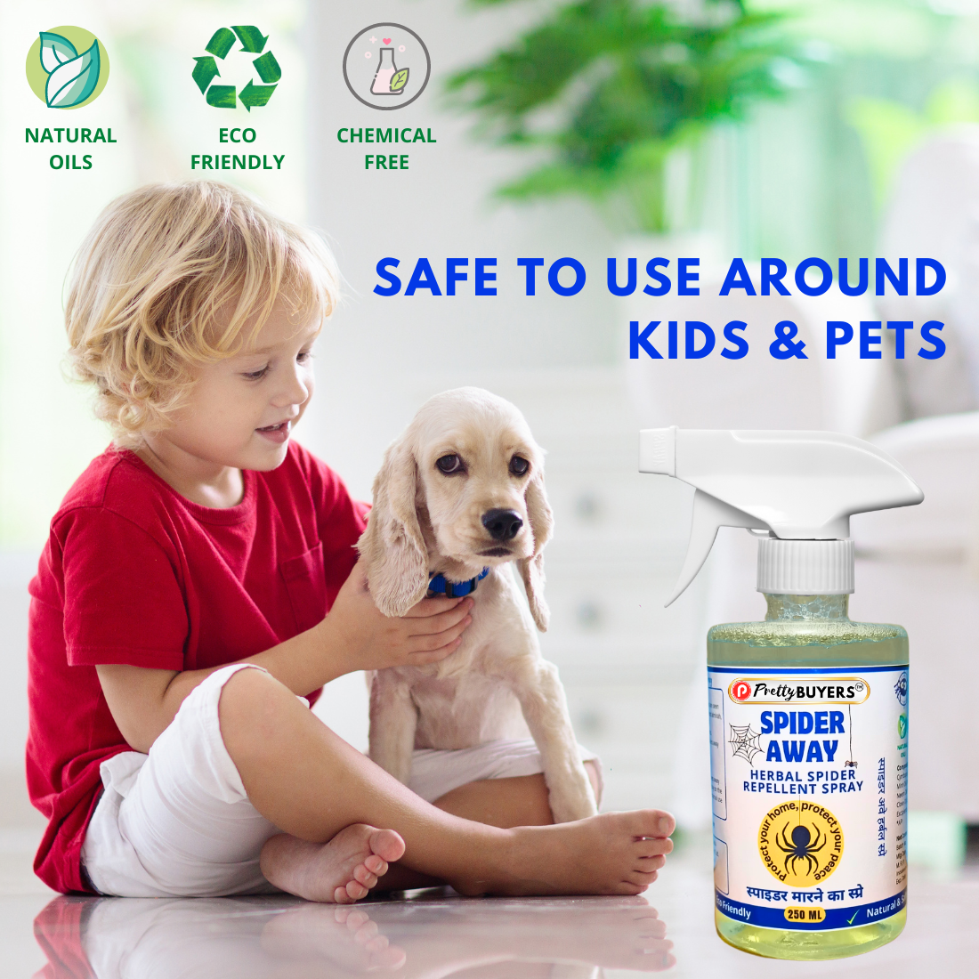 PrettyBUYERS Spider Away is a completely organic product made with a blend of essential oil. Pretty BUYERS Spider Away spray is a 100 % effective solution against spiders.